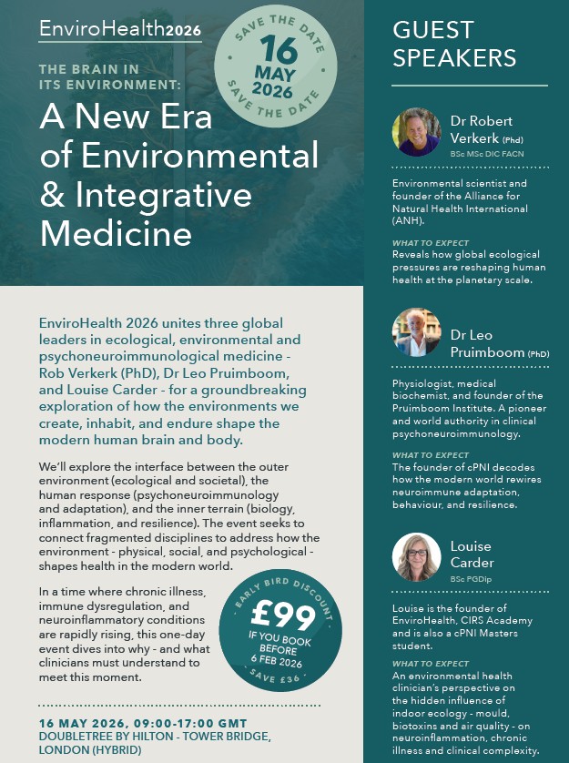 EnviroHealth 2026 unites three global leaders in ecological, environmental and psychoneuroimmunological medicine - Rob Verkerk (PhD), Dr Leo Pruimboom, and Louise Carder - for a groundbreaking exploration of how the environments we create, inhabit, and endure shape the modern human brain and body.