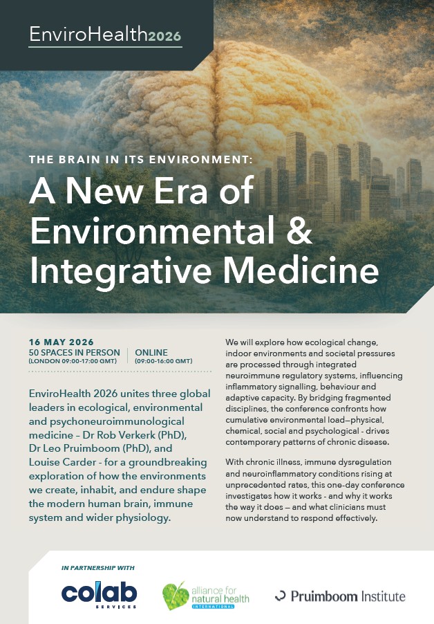 EnviroHealth 2026 unites three global leaders in ecological, environmental, and psychoneuroimmunological medicine — Dr Rob Verkerk, Dr Leo Pruimboom, and Louise Carder — for a groundbreaking exploration of how the environments we create, inhabit, and endure shape the modern human brain and body. EnviroHealth 2026 will explore the interface between the outer environment (ecological and societal), the human response (psychoneuroimmunology and adaptation), and the inner terrain (biology, inflammation, and resilience). It seeks to connect fragmented disciplines to address how the environment—physical, social, and psychological—shapes health in the modern world. In a time where chronic illness, immune dysregulation, and neuroinflammatory conditions are rapidly rising, this one-day event dives into why — and what clinicians must understand to meet this moment.